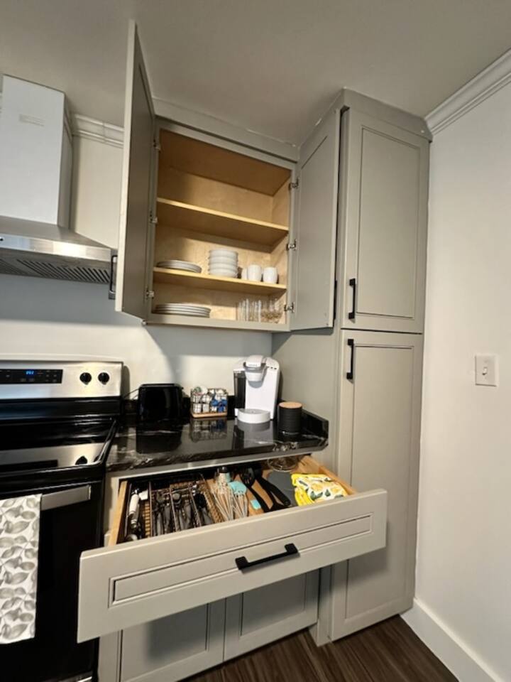 Come stay, unwind at this thoughtfully designed space, right near the stadium where the Greenville Drive Minor League Baseball team plays. It's the perfect mix of comfort, style, & convenience. Bright, clean, & modern, with super comfy bed, smart TVs, well-stocked coffee station with dual Keurig & drip coffee maker. Just minutes from downtown, local parks, and the best hidden food spots in town including walking distance from the most trendy coffee shop in Greenville Summer Moon.